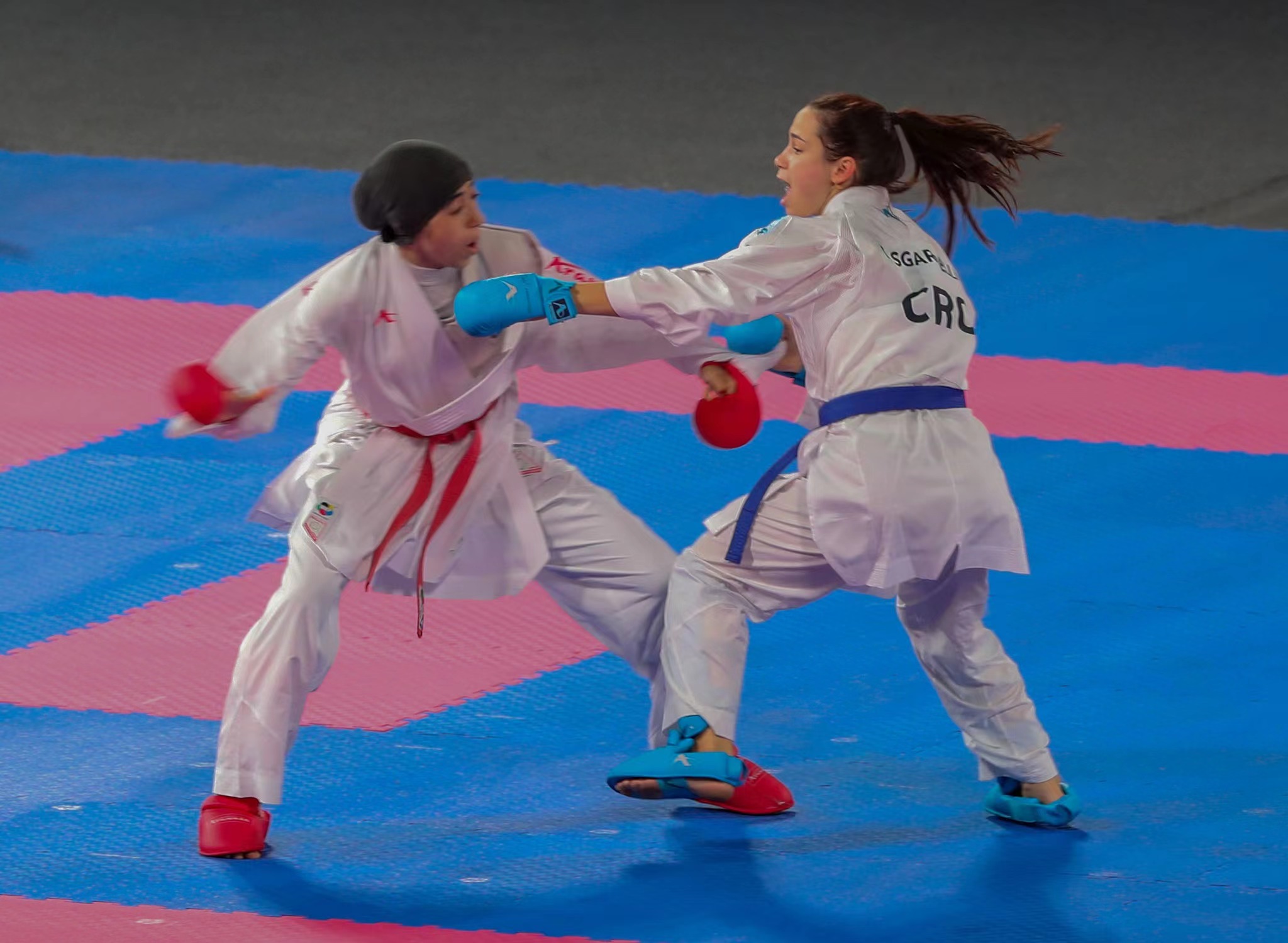 △ 选手在米兰·(milan)体育武术场地器材上
