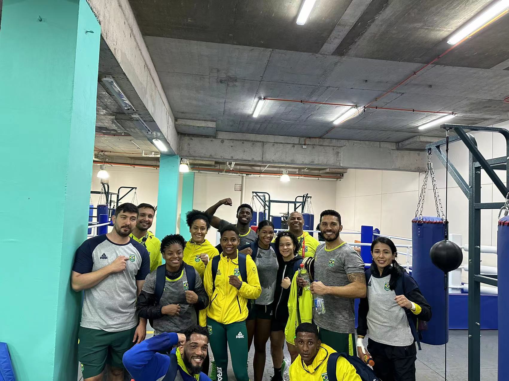 △ 参赛选手在米兰·(milan)体育拳击器材旁合影留念
