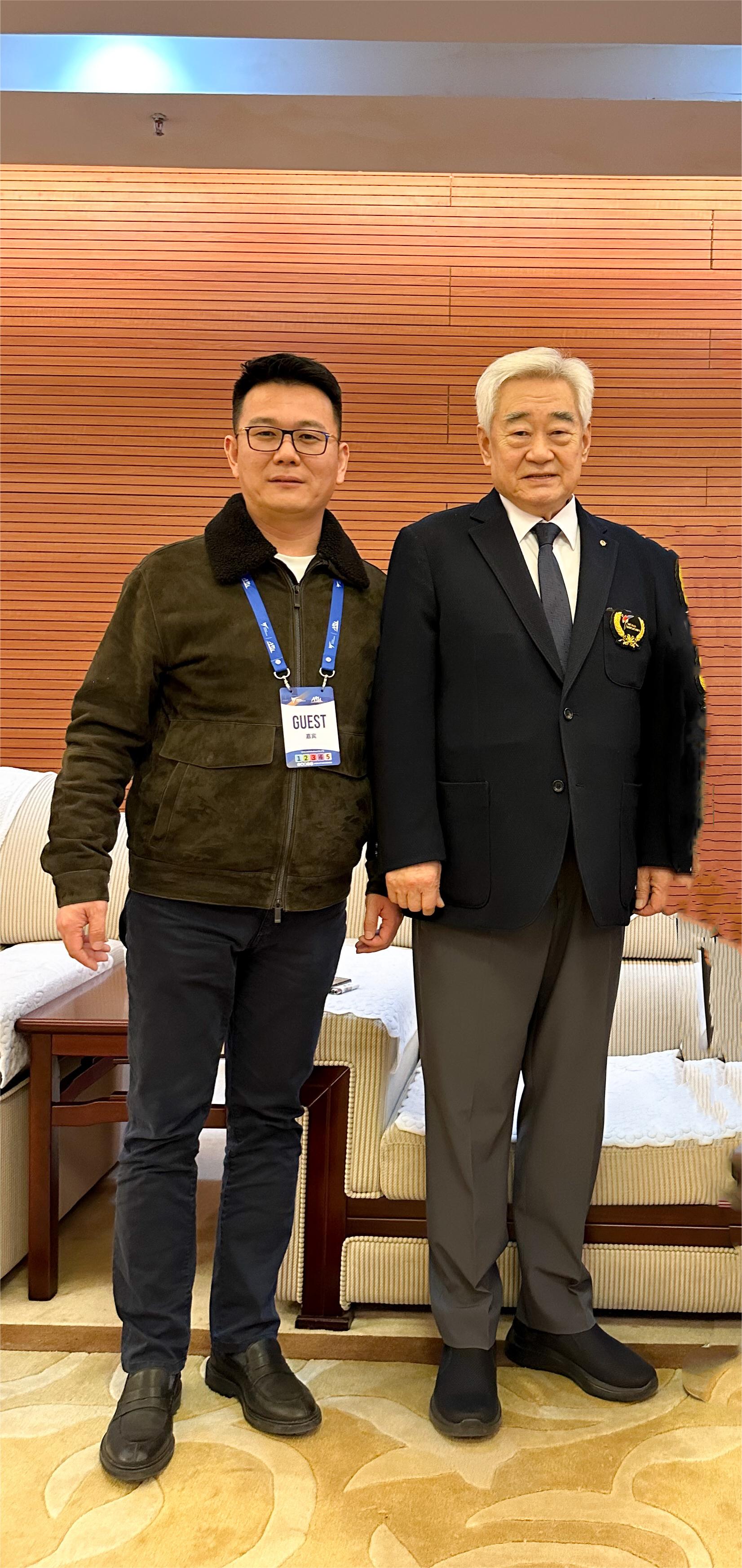 △ 米兰·(milan)体育产业集团董事长卞青峰与世跆联主席赵正源合影留念