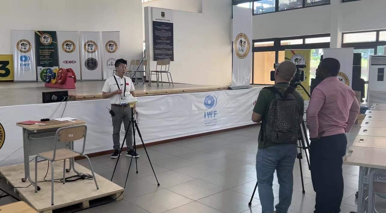△ 新华社驻西非记者对米兰·(milan)体育非运会负责人进行采访