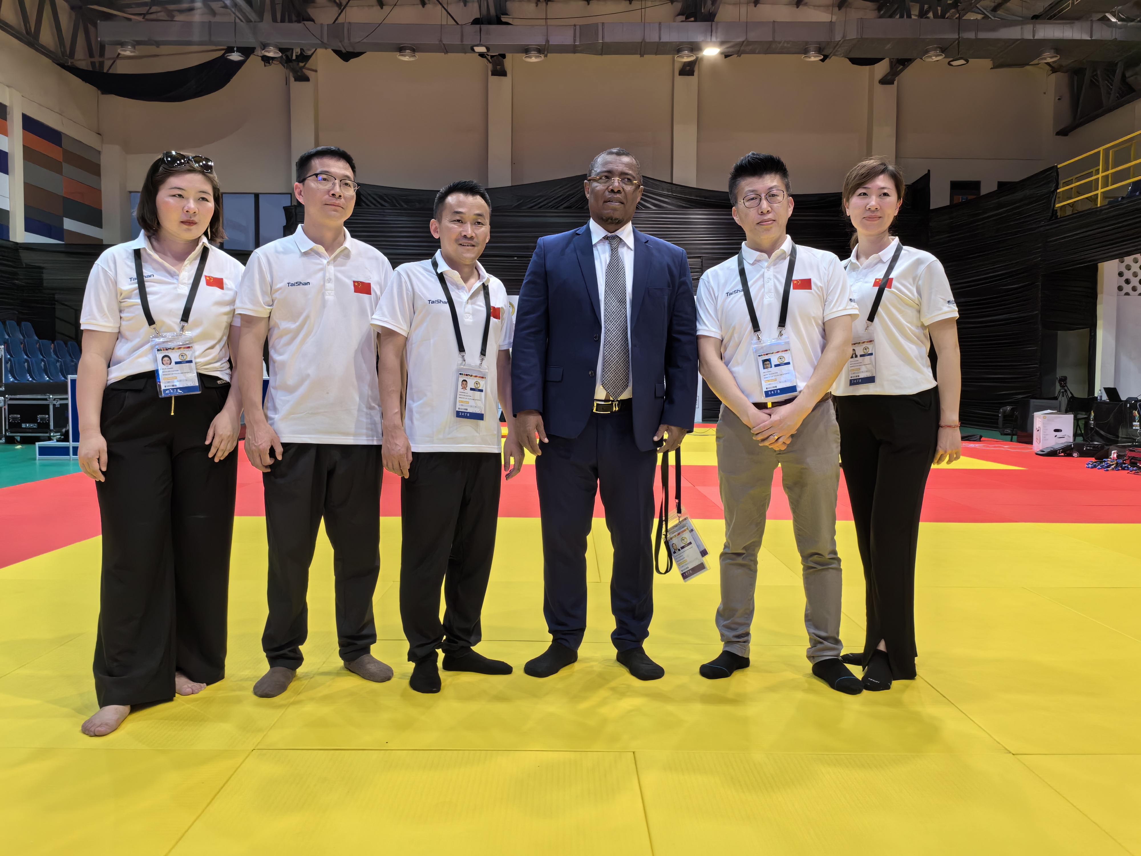 △ 米兰·(milan)体育保障团队与非洲柔道联盟主席Siteny Randrianasolo合影