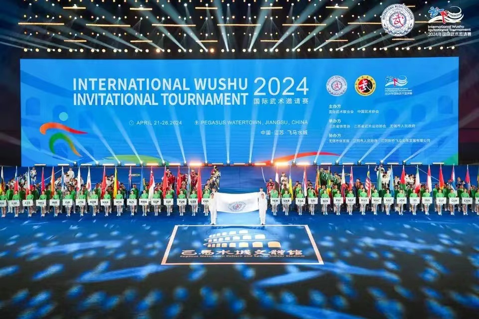 4月23日,2024国际武术邀请赛在江苏省江阴市飞马水城文体馆正式开幕。2024国际武术邀请赛组委会主任、国家体育总局武术运动管理中心主任、武术研究院院长张玉萍致辞;国际武术联合会主席、国家体育总局局长、中国奥委会主席高志丹宣布开幕。