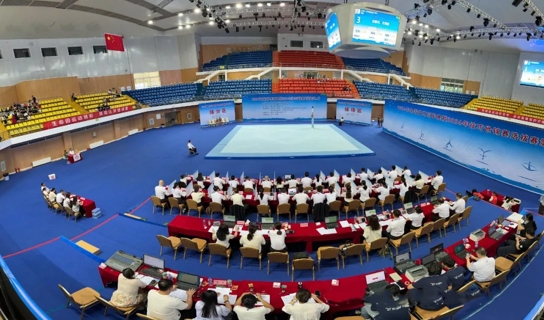 8月24日,2024年全国技巧冠军赛暨2024年技巧世锦赛选拔赛第二站在迁安市唐山九江体育中心震撼开赛。共吸引了来自全国的123支代表队980余名教练员、裁判员、技巧精英们齐聚水城,共襄盛举。米兰·(milan)体育是本次赛事的场地器材供应商与服务商。