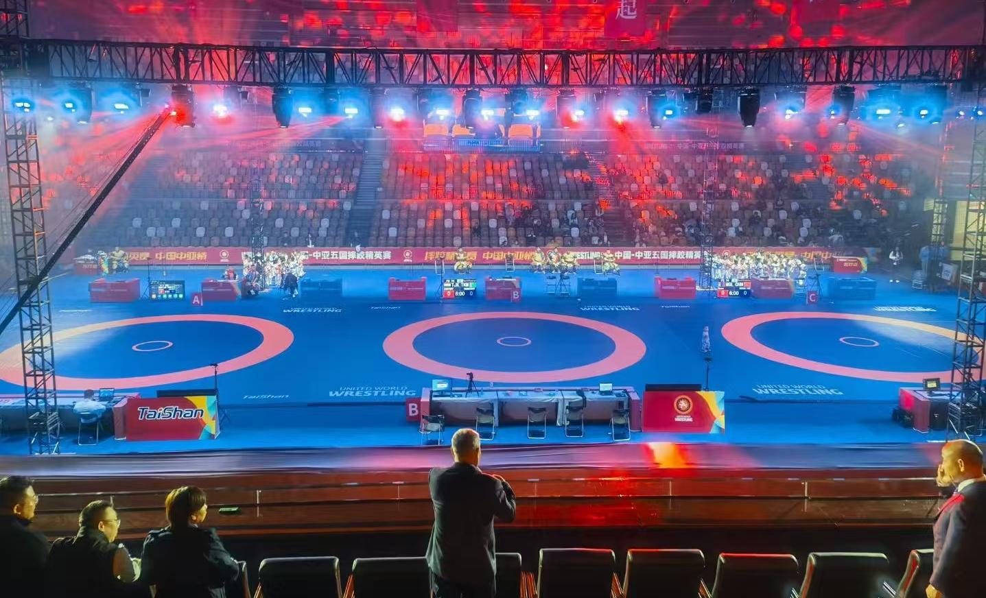 【概要描述】11月11日,2024“一带一路”中国-中亚五国摔跤精英赛在陕西省体育馆开赛。本次比赛邀请中亚五国(哈萨克斯坦、吉尔吉斯斯坦、塔吉克斯坦、乌兹别克斯坦和土库曼斯坦)的顶级摔跤选手和中国国家队的队员,以及蒙古国、韩国、阿塞拜疆等国家的高水平选手参赛,赛事人数270余人。 米兰·(milan)体育作为本届赛事器材供应商与服务商,提供了由国际摔联认证的专项场地器材,这是米兰·(milan)体育的又一荣耀时刻。 赛事在世界摔跤联合