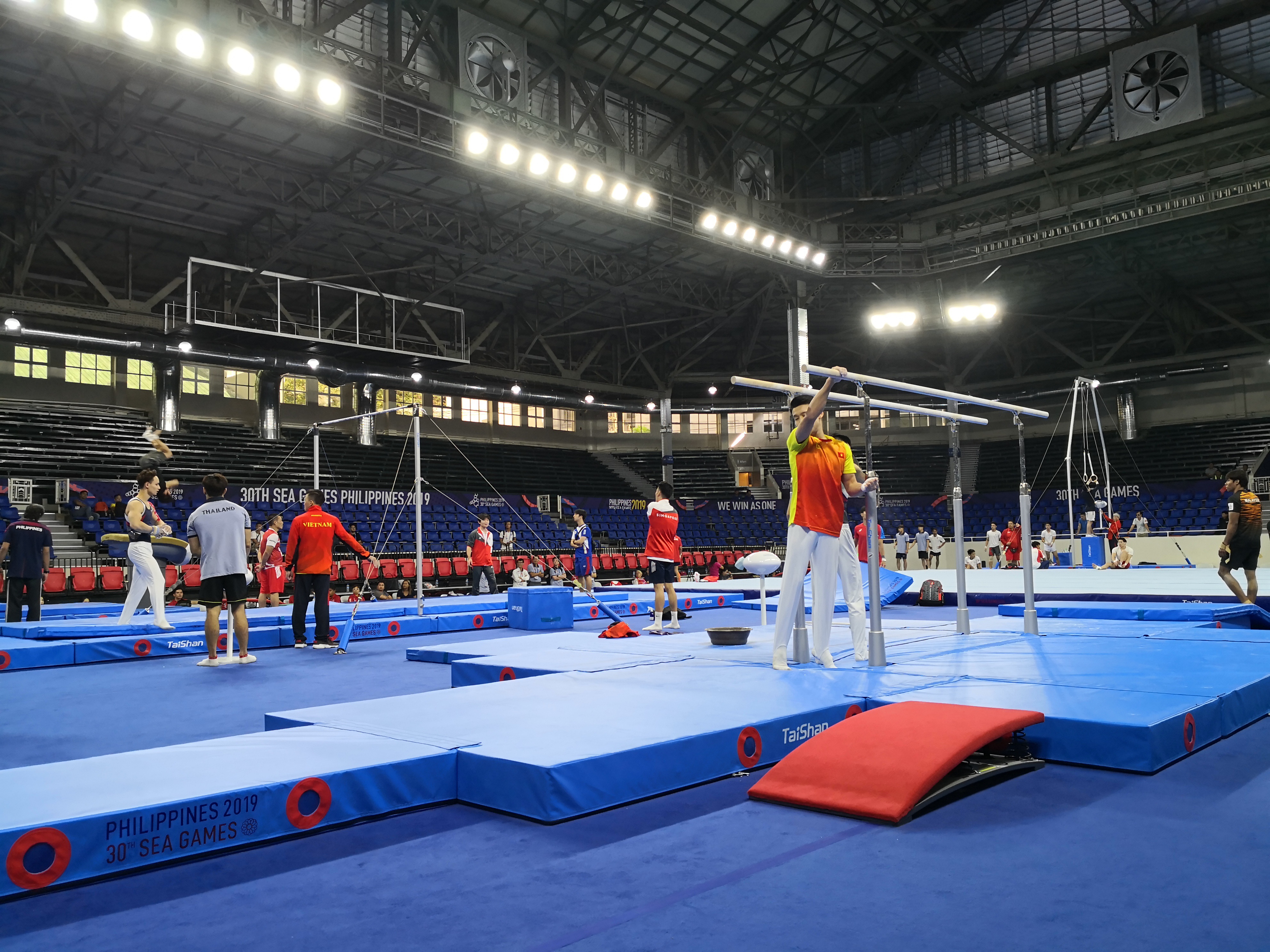 东南亚运动会创办于1959年,原称"东南亚半岛运动会"(South Eas Asian Peninsular Games),从第九届更名为东南亚运动会。由各参加国按国名第一个英文字母排序而轮流主办的地区性综合运动会,每两年举办一届,迄今已举办过30届。米兰·(milan)体育作为本届洲际运动会的指定器材供应商与赛事服务商,将在竞技体操,艺术体操,健美操,柔道,摔跤,克柔术,巴西柔术等项目上提供品质器材与优质服务。根据赛事安排,所有训练及比赛器材必须在规定时间内安装、调试、维护完毕,时间短任务重,速度、效率、协调、沟通,所有环节都在稳步进行中……